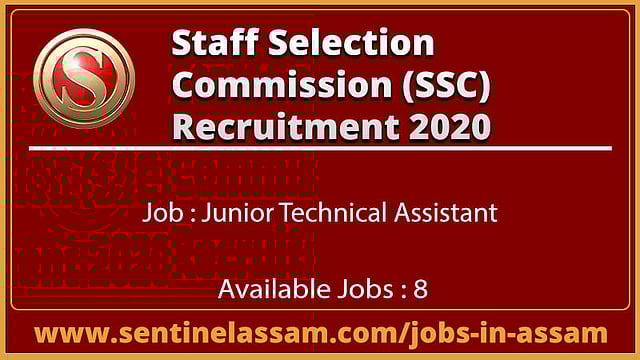 স্টাফ সিলেকশন কমিশন(এসএসসি)জুনিয়র টেকনিক্যাল অ্যাসিস্টেন্ট পদে নিয়োগের উদ্দেশ্যেব যেকোনও স্নাতক প্ৰার্থীর জন্য চাকরির বিজ্ঞপ্তি জারি করেছে। আগ্ৰাহী এবং যোগ্য প্ৰার্থীরা ৮টি জুনিয়র টেকনিক্যাল অ্যাসিস্টেন্ট পদের জন্য এসএসসির অফিশিয়াল ওয়েবসাইটে ২০-০৩-২০২০ তারিখ অথবা তার আগে আবেদন করতে পারবেন।
