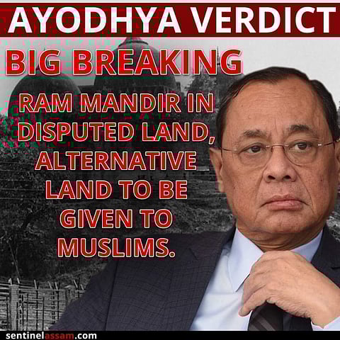 সুপ্ৰিমকোর্টের মুখ্য বিচারপতি রঞ্জন গগৈর নেতৃত্বে পাঁচ সদস্যের বেঞ্চ টানা ৪০ দিন এই মামলার শুনানি গ্ৰহণ শেষে রায়দান স্থগিত রেখেছিল তবে আজ সুপ্ৰিমকোর্টের রায়ে বলা হয়েছে,বিতর্কিত জমিতে রাম মন্দির হবে। মুসলিমদের জন্য পৃথকভাবে পাঁচ একর জমি বরাদ্দ করা হবে।
