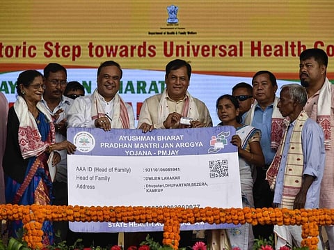 গুয়াহাটিঃ প্ৰধানমন্ত্ৰী নরেন্দ্ৰ মোদির মেগা স্বাস্থ্যরক্ষা প্ৰকল্প ‘আয়ুষ্মান ভারত তথা জন আরোগ্য যোজনা’ রবিবার সারা দেশের সঙ্গে অসমেও সূচনা করা হলো। এই প্ৰকল্পের ফলে অসমের জনসংখ্যার প্ৰায় অর্ধেকভাগই বিনামূল্যে কঠিন রোগের চিকিৎসা করানোর সু্যোগ পাবেন। প্ৰধানমন্ত্ৰী মোদি রবিবার রাঁচিতে সরকার পরিচালিত বিশ্বের বৃহত্তম স্বাস্থ্যরক্ষা প্ৰকল্পের ‘আয়ুষ্মান ভারত প্ৰধানমন্ত্ৰী আরোগ্য যোজনা’-র আনুষ্ঠানিক সূচনা করেন।