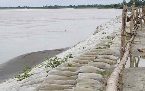 যোরহাটঃ মাজুলি দ্বীপের প্ৰবেশপথ নিমাতিঘাটে ব্ৰহ্মপুত্ৰ তীরে ভাঙন বিরোধী অভিযানের কাজ প্ৰায় সম্পূর্ণ হওয়ার পথে। মহাবাহু ব্ৰহ্মপুত্ৰ ২০১৪ ও ২০১৭ সালে নিমাতিঘাটের প্ৰায় ৫০০ মিটার এলাকা ভেঙে নিয়ে যায়। নিমাতিঘাটের প্ৰবেশ পথে প্ৰায় ২ কিলোমিটার এলাকাও হুমকির মুখে পড়েছিল। তবে নিমাতিঘাটে নদীর পাড়ে কয়েকশো জিওব্যাগ বসানোর পর ভাঙনের প্ৰকোপ আটকানো গেছে। নিমাতিঘাট একটা নদী বন্দর। রাজ্য সরকারের জলসম্পদ বিভাগ ২০১৭ সালের জুন থেকে ভাঙন বিরোধী অভিযান শুরু করে। এখনও ওই এলাকায় কাজ চলছে। এই অভিযানের জন্য নিমাতিঘাটের মানুষ কিছুটা হলেও স্বস্তি ও আশার আলো দেখতে পাচ্ছেন। টঙ্কেশ্বর কলিতা নামের একজন ব্যবসায়ী সোমবার একথা বলেন।