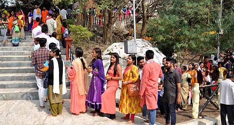 গুয়াহাটিঃ শিবরাত্ৰি উপলক্ষে শুক্ৰবার গুয়াহাটিতে ব্ৰহ্মপুত্ৰের বুকে থাকা উমানন্দ মন্দিরে সহস্ৰাধিক ভক্তের সমাগম ঘটে। ভক্তরা নদী দ্বীপে গিয়ে সারি দিয়ে দেবাদিদেব মহাদেবের আরাধনা করেন। উমানন্দ দেবালয়ের পরিচালন কমিটি বলেছে,শহরের বিভিন্ন এবং এমনকি বাইরে থেকে অজস্ৰ ভক্ত এদিন মন্দির প্ৰাঙ্গণে এসে শিবের মাথায় দুধ ও জল ঢেলে পূজা অর্চনা করেন। মন্দিরের একজন পুরোহিত প্ৰণব শর্মা জানান ভগবান শিবের চরণে পুষ্পাঞ্জলি দেন অজস্ৰ মানুষ। ৮ থেকে ৯ হাজার ভক্ত এদিন দ্বীপভূমির পাহাড়ে উঠে মন্দিরে পুজা দেন এবং মহাদেবের আশীর্বাদ নেন। শিব চতুর্দশী থাকায় শনিবারও উমানন্দ দেবালয়ে ভক্তপ্ৰাণ মানুষের ঢল নামবে বলে আশা করা হচ্ছে।