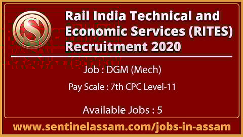 রেল ইন্ডিয়া টেকনিক্যাল অ্যান্ড ইকনোমিক সার্ভিসেস(আরআইটিইএস) ৫টি খালি পদ পূরণের জন্য যোগ্য প্ৰার্থীদের কাছ থেকে আবেদনপত্ৰ আহ্বান করেছে। পিএসইউ সংস্থাটি ডিজিএম(মেকানিক্যাল)পদে প্ৰয়োজনীয় শিক্ষাগত যোগ্যতা থাকা উপযুক্ত প্ৰার্থীদের কাছ থেকে আবেদনপত্ৰ আহ্বান করেছে। আরআইটিইএস লিমিটেডের বঙাইগাঁও,অসম,রুরকেল্লা,ওড়িশা,নবীনগর,বিহার,ফারাক্কা,পশ্চিমবঙ্গ,মারওয়ার,রাজস্থানে থাকা এই খালি পদগুলো ডেপুটেশন ভিত্তিতে পূরণ করা হবে।