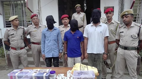 গোয়ালপাড়াঃ অসম পুলিশ এবং দিল্লি পুলিশের একটি বিশেষ সেল যৌথ অভিযান চালিয়ে নিম্ন অসমের গোয়ালপড়া জেলা থেকে শনিবার তিন সন্দেহভাজন সন্ত্ৰাসীকে আটক করেছে। স্পেশাল সেলের এসিপি ললিত মোহন এবং হৃদয় ভূষণের তত্ত্বাবধানে অভি্যানে নেতৃত্ব দেন ইন্সপেক্টর সুনীল রঞ্জন,রবীন্দার যোশী এবং বিনোদ বাদেলা। আটক তিন সন্দেহভাজন সন্ত্ৰাসীকে রঞ্জিত ইসলাম ওরফে রঞ্জিত আলি(২৪),মুক্তাদির ইসলাম(২২)এবং লুইত জামিল জামান ওরফে আলি(২৪)নামে শনাক্ত করা হয়েছে। আলবুদ্দিন শেখের ছেলে রঞ্জিত গোয়ালপাড়া জেলার কৃষ্ণাইয়ের নয়াপাড়ার বাসিন্দা। জহিরুল ইসলামের ছেলে মুক্তাদির ইসলাম কৃষ্ণাইয়ের সরদাবরা গ্ৰামের। লুইত জামিল জামান কৃষ্ণাইয়ের সরদাবরা গ্ৰামের বাসিন্দা মেহমুদ আলির ছেলে। অভিযুক্তরা দুধনৈয়ের রাস মেলায় বিস্ফোরণ ঘটানোর উদ্দেশ্যে একটি আইইডি হাতে রেখেছিল। আটক তিন যুবক বাংলাদেশের জেহাদি সংগঠন আইএস আইএস-এর দ্বারা অনুপ্ৰাণিত বলে জানা গেছে। এছাড়াও তরোয়াল ও ছুরি ইত্যাদিও তাদের সঙ্গে ছিল। ধৃতদের জেরার ভিত্তিতে অভি্যানে নেমে পুলিশ সন্ত্ৰাসীদের দুটি গোপন ডেরা থেকে বেশকিছু আইইডি সহ বিস্ফোরক সামগ্ৰী উদ্ধার করেছে। দিল্লি পুলিশের এক প্ৰেস বিবৃতিতে এখবর জানানো হয়েছে। দুধনৈয়ে চলা রাস মেলার শেষ দিনে সন্ত্ৰাসী হামলা চালানোর পরিকল্পনা এঁটেছিল এরা। সন্দেহভাজন তিন সন্ত্ৰাসী দিল্লিতে থাকা আইএস-এর একটি নেটওয়র্কের সঙ্গে যোগাযোগ রক্ষা করে চলছিল। দুধনৈয়ের পর দিল্লিকে টার্গেট করারও ছক করেছিল এরা-জানানো হয় ওই বিবৃতিতে। গোয়েন্দা সূত্ৰের তথ্যের ভিত্তিতেই দিল্লি পুলিশ জেহাদি সংগঠনের সঙ্গে জড়িত থাকার অভিযোগে গোয়ালপাড়ার একদল যুবককে চিহ্নিত করে। জেহাদি সংগঠনের এই তৎপরতা সম্পর্কে গোয়েন্দা সূত্ৰে জানার পরই দিল্লি পুলিশের বিশেষ সেল অসম পুলিশের সঙ্গে যোগাযোগ করে। এরপরই দিল্লি পুলিশের বিশেষ সেল ও অসম পুলিশ গোয়ালপাড়া শহরের মধুবন লজে ফাঁদ পেতে এই তিন সন্দেহভাজন জঙ্গিকে আটক করতে সফল হয়। বর্তমানে এদের জেরা করা হচ্ছে। জেরার মুখে পড়ে ধৃতরা স্বীকার করেছে দুধনৈয়ের রাস মেলায় আইইডি বিস্ফোরণের পরিকল্পনা পাকা করেছিল তারা। সন্দেহভাজন যুবকরা বলেছে,অসমে পরীক্ষা মূলক এই বিস্ফোরণের পর দিল্লিকে তারা পরবর্তী টার্গেট করেছিল। দিল্লির বেশ কিছু লোককেও তারা মৌলবাদের পাঠও শিখিয়েছে বলে জানা গেছে।